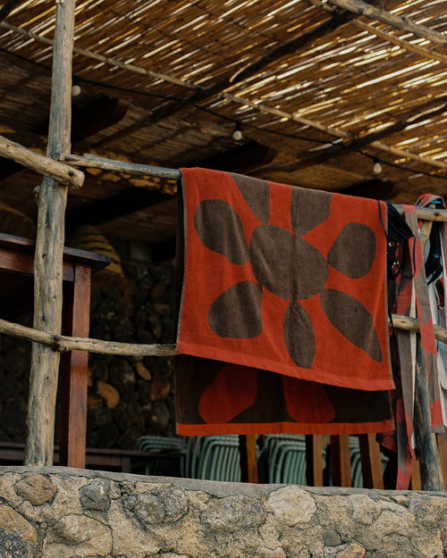 From our friends at Sun Rituals, the Calvi towel is in beautiful earthy tones of dark brown and red. With a beautiful pattern and thick, absorbent weave, you will be taking this towel out with you all summer. This unique setting allows one to really absorb the power of nature. The perfect towel for vacation.