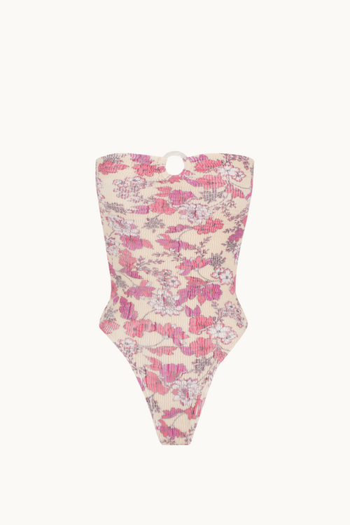 This simple yet sophisticated maillot is a versatile piece to add to your repertoire. The Lei Maillot. A bandeau style full piece with a white acetate hoop detail at front. The Manly can be paired with a skirt or pants and used as a body suit too.