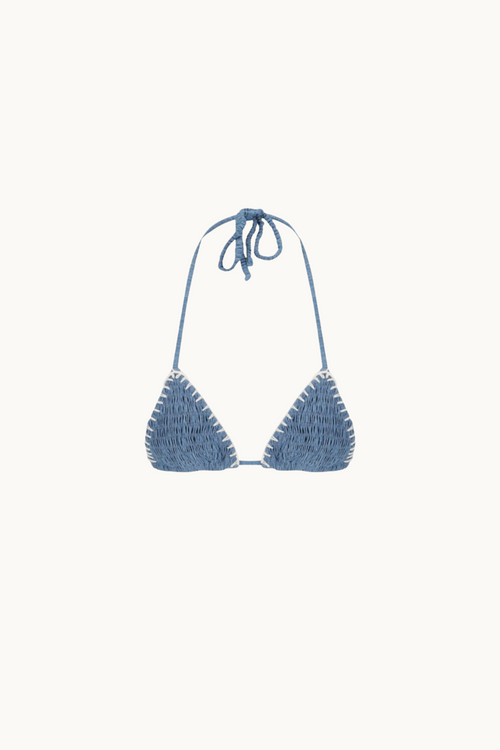 Part of our denim chambray collection, the Nala Kini Top is a cute shirred triangle kini with white edging and elasticated straps. Stand out at the beach or bar, or anywhere in between.