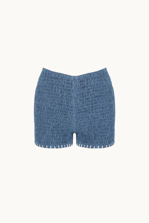 Part of our denim chambray collection, the Nala Mini Shorts. These shorts are designed to be a style statement and feature shirred cotton, white edging and elasticated waist and legs.