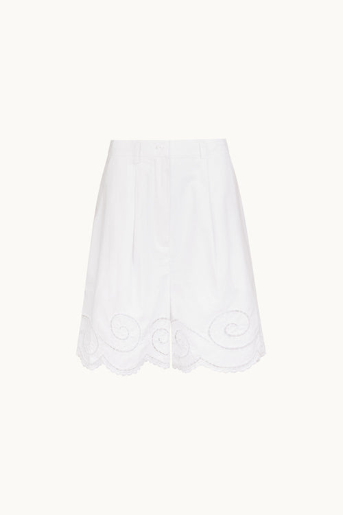 Elevate your wardrobe with these tailored shorts crafted from 100% cotton poplin. Featuring a classic cut with belt loops, a concealed zip fly, and practical side pockets, they're designed for effortless sophistication. The standout hand-embroidered kerawang detail adds an artisanal touch, making these shorts perfect for both casual outings and polished occasions. A versatile essential that transitions seamlessly from day to night.