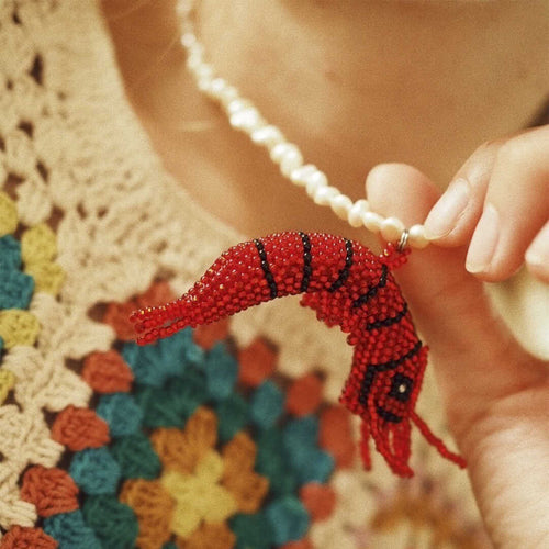 Add a splash of charm to your look with the Prawn & Pearls Necklace, handcrafted by Amori Mori. This one-of-a-kind piece combines playful brightness with unique artistry, making it a fun statement accessory that’s sure to turn heads. Perfect for those who love to stand out with a touch of whimsy and elegance.