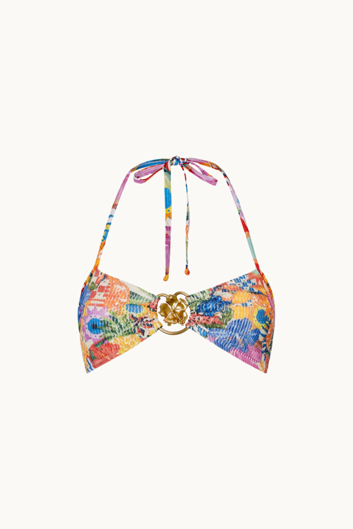 The River Kini! Our bandeau style, spaghetti strap halter and easy wear kini with our gold hibiscus hoop detail to really complete the style.