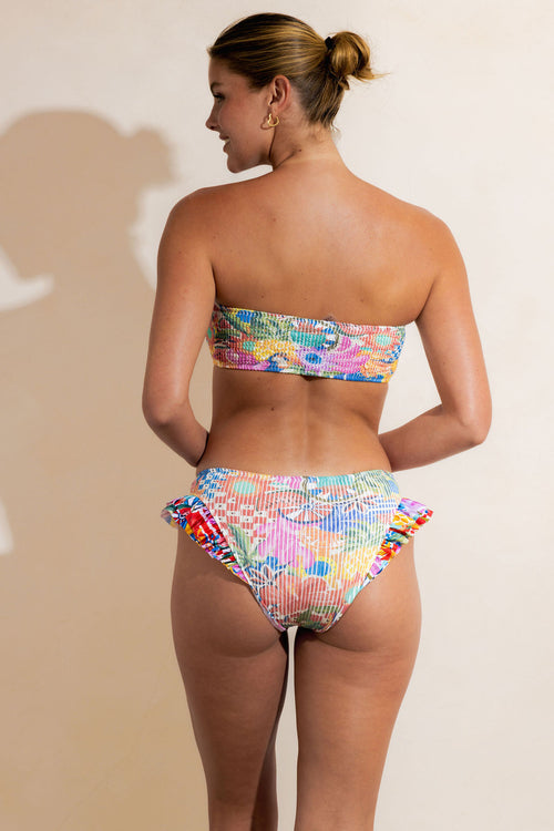 A playful twist on our classic low-waisted brief. The Salsa Brief features soft leg frills that add a touch of fun and femininity, bringing movement and flair to your swim look. Designed to sit comfortably on the hips, it's the perfect blend of flirty and functional.