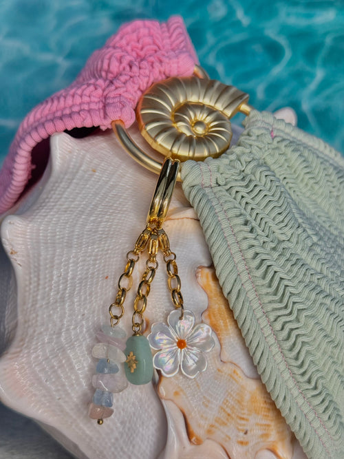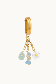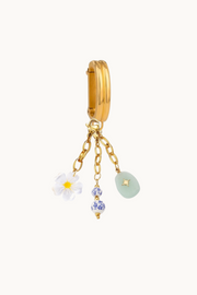 Add a splash of seaside charm with this playful trio adornment- mixing the stacked blue stones, blue stone and daisy flower charms.