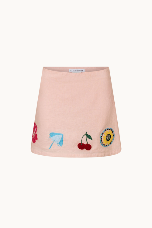 Our Flores Mini Skirt is a playful addition to your beach or poolside paradise. The Flores pairs perfectly with our Namaste Crop, and Kai Bralette, the Flores has stunning cherry, beach and flower motifs around the hemline, to make you feel comfortable and stylish with every wear.