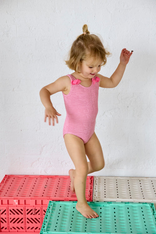 New to our SEA BY CLEONIE KIDS collection, The Bow Maillot. Simple in design yet so easy to wear, with our signature eco tubular fabric- so soft and comfy for your little one paired with the sweetest bow on each shoulder.