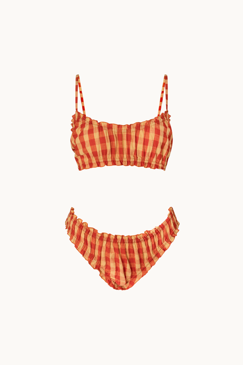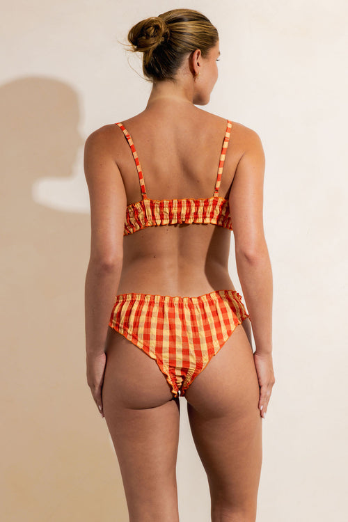 The Mahalo Kini Top is a lightweight cotton bralette style kini set with shoestring straps. Stand out at the beach or bar, or anywhere in between.