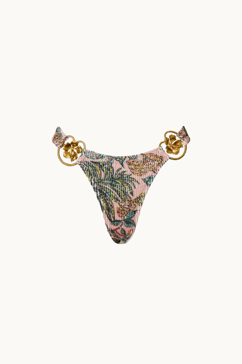 Say hello to the Melon Brief in our Sumatra print! With eco gold hibiscus hoop details at the front, this brief will add a playful touch to your swimwear collection. It's mid back coverage and high hip fit ensure comfort and confidence for any sunny adventure.