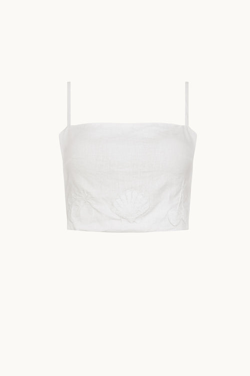Our Namaste Linen Crop is a playful addition to your beach or poolside paradise. With shoestring straps, tie back and stunning cherry, beach and flower motifs around the waitstline, you will feel comfortable and stylish with every wear.