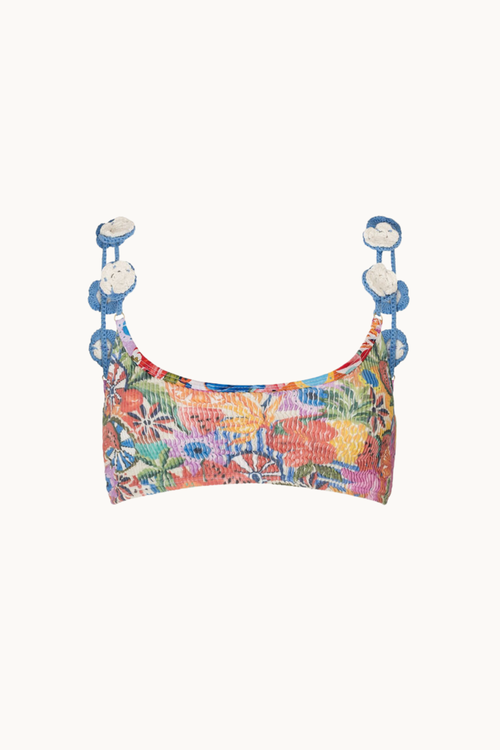 Our Paridiso Crop is designed to help you make a statement while still feeling secure. This sporty and playful kini crop has hand crocheted flowers on each shoulder strap, allowing you to flaunt your style no matter where you go! Show them you're not afraid to be bold.