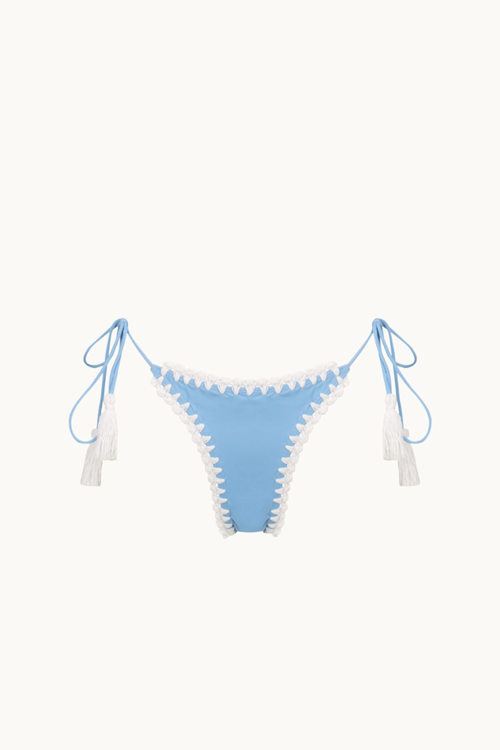 Elevate your swimwear collection with the Peaches Crochet Trim Kini Brief, a perfect fusion of sustainability and artisanal craftsmanship. Made from luxurious Italian eco-friendly econyl in stunning blue hues, this piece is edged with delicate cotton hand crochet for a timeless, boho-inspired touch.