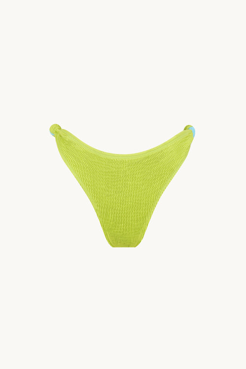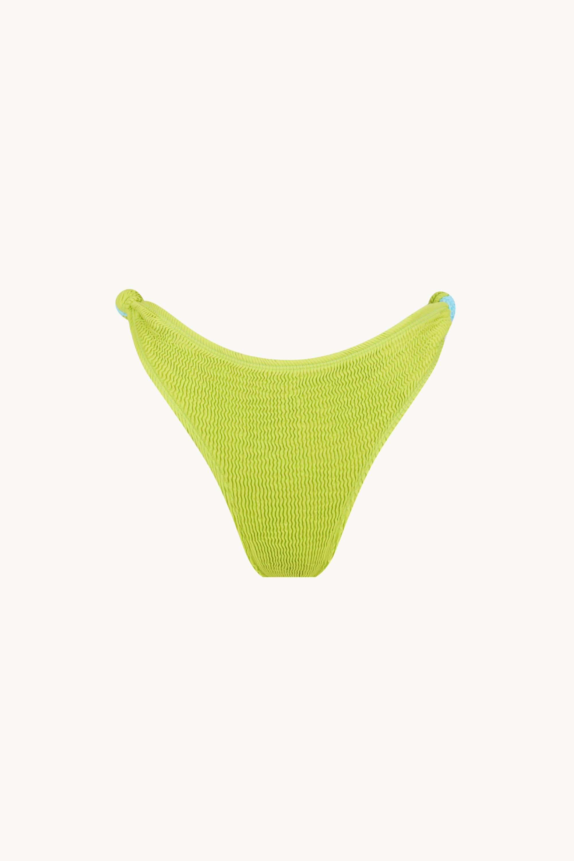 Take your swim style to paradise with the Bora Bora Briefs in Sky and Chartreuse! This mid-waist high, side knot brief is your ticket to sun-soaked fun. Enjoy the summer heat without worry, and look good while doing it! It'll be love at first knot!