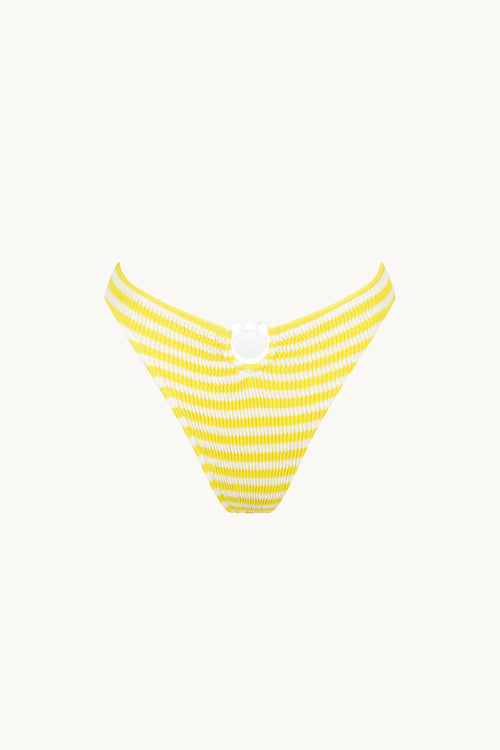 The Byron Briefs! A low-rise brief that's all sunshine and rainbows! Whether at the beach, pool or around town, Byron Briefs in Sunshine Stripe will have you looking and feeling fly with its eco shell detail and mid-cheeky coverage. So forget those cloudy days and bask in the joy of the Sunshine Stripe!