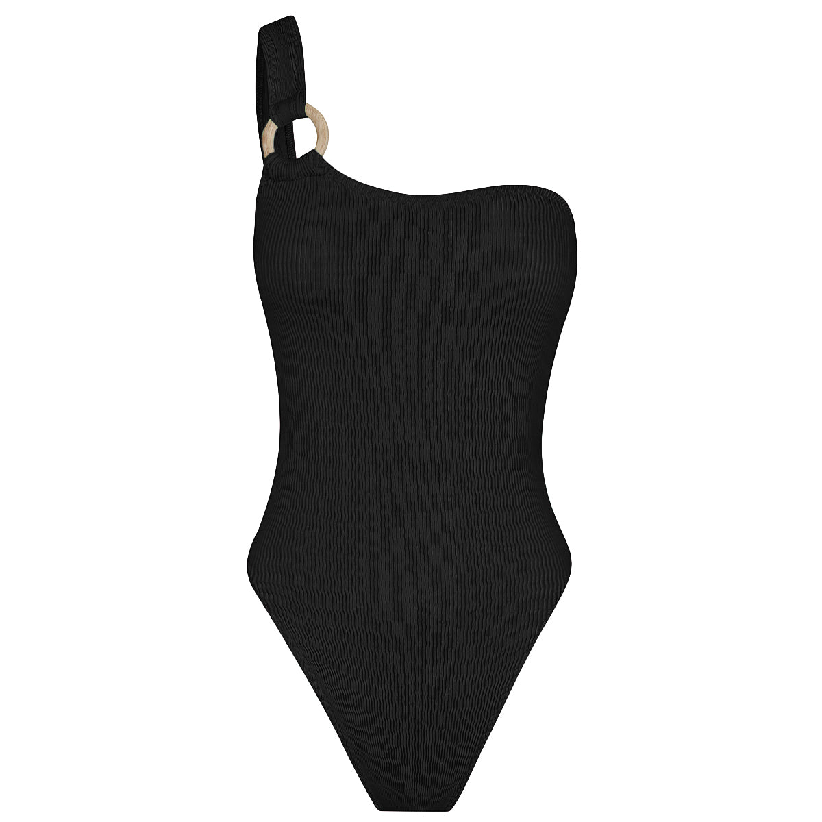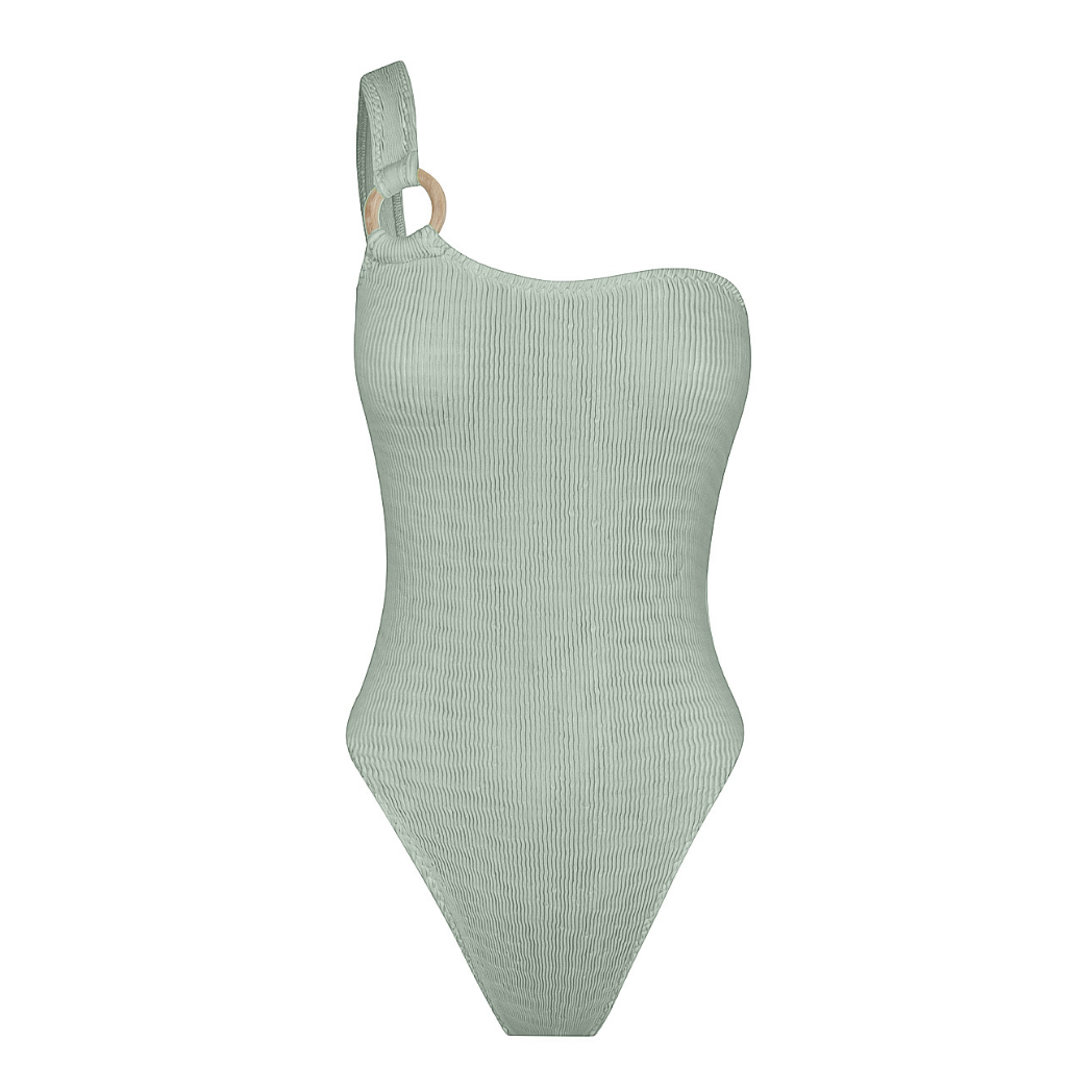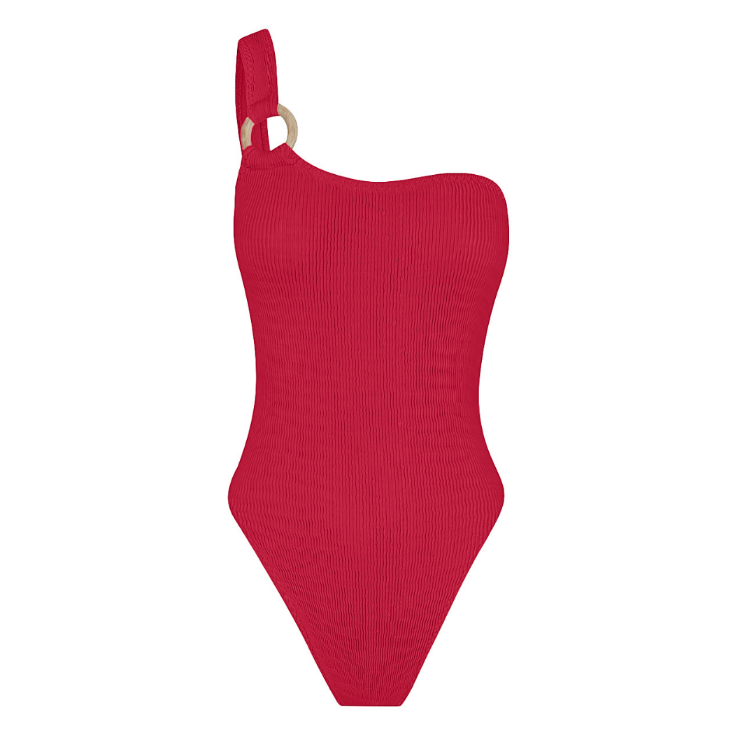 The Floating Maillot has a scoop neckline to a one shoulder feature, with our signature wooden hoop and low scoop back. Our maillot can be paired with a skirt or pants and used as a body suit too.